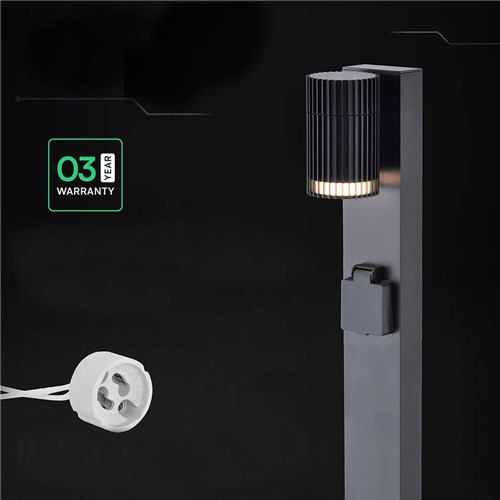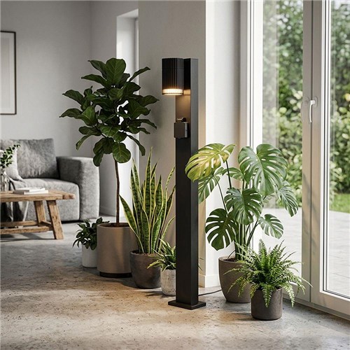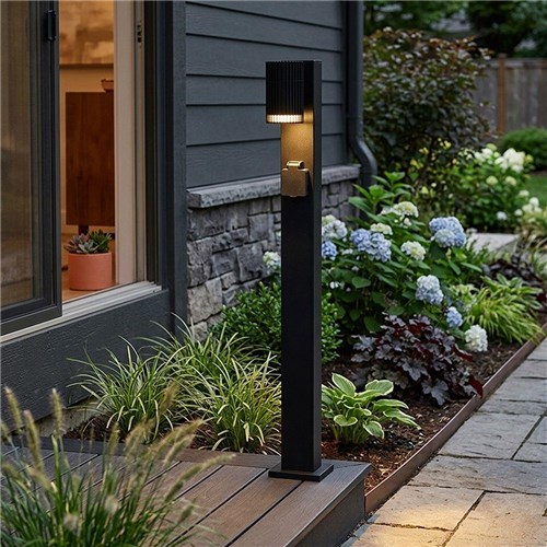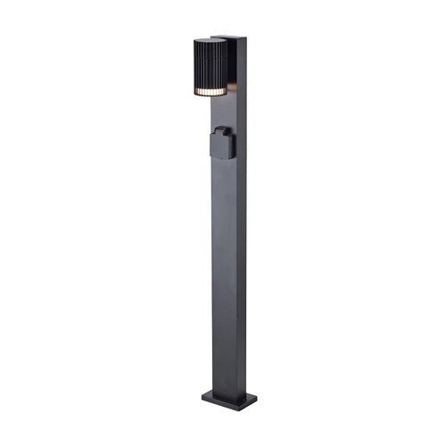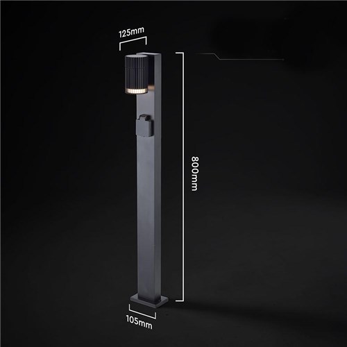 Nowoczesny słupek ogrodowy o wysokości 80cm z wbudowanym gniazdem elektrycznym 230V, który łączy funkcję oświetlenia oraz praktycznego punktu zasilania w przestrzeni zewnętrznej. Idealne rozwiązanie do ogrodów, tarasów i podjazdów, gdzie oprócz światła potrzebny jest dostęp do prądu.